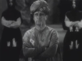 Along with its good camerawork and location work, Chandu boasts a production frill not found in most contemporary serials–musical themes that periodically accompany the serial’s in-chapter action and aren’t just played over each episode’s credits; these pieces are by turns moodily ominous, quietly mysterious-sounding (like the serial’s opening theme, derived from the radio show) and feverishly excited (particularly Christoph Gluck’s insistent “Dance of the Furies”). Like the cinematography, the music comes off as well-suited to Chandu’s narrative; it also helps to make many scenes that would have otherwise come off as static–like the Chapter Two sequence in which Nadji slowly succumbs to the effects of a drugged flower–seem suspenseful instead.