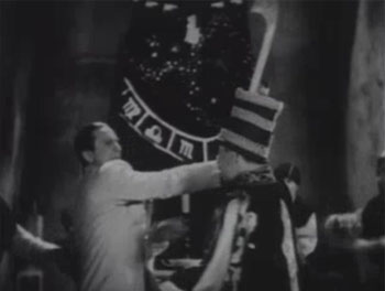 Since Lesser’s “Principal Pictures” was an outfit that enjoyed better access to filmmaking resources than most other independent studios (Lesser was frequently hired to turn out B-features for bigger studios), Return of Chandu boasts production values far more polished than those of other independent serials. Indeed, visually speaking it looks every bit as good as the chapterplays released by Mascot and even Universal during the same era–due in large part to fine work by director Ray Taylor and cinematographer John Hickson, both of them frequent contributors to Universal serials; they shoot Chandu in an eerie, atmospheric, and frequently striking style quite appropriate to the serial’s unusual “occult” theme.