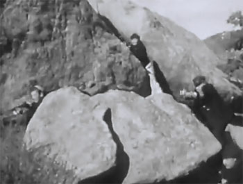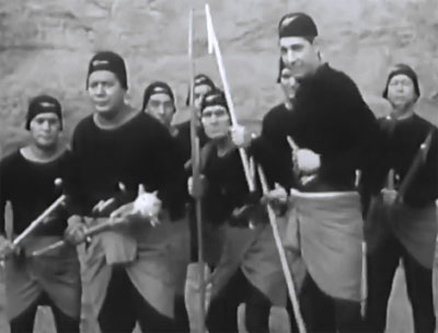 Cliffhangers in Island are frequently too abrupt, particularly the Chapter One rockfall, the Chapter Two cliffhanger (which has the Volcano Men suddenly tossing explosive powder at the good guys), and the Chapter Five electrical-spark blast that engulfs the heroes. The endings of Chapter Eight (in which the heroes are forced towards pirate gunfire by native spears) and Chapter Twelve (which has Harding and Pencroft cornered in a cave by the Mercurians and blasted by their ray-guns) also suffer from abruptness, but are both dramatically shot. The Chapter Eleven pirate-ship explosion (undoubtedly stock footage from some feature-film) is impressive, but is brought about by an illogical and utterly inexplicable act on Ayrton’s part. The Chapter Thirteen deadfall cliffhanger is carefully set up and effectively executed; the Chapter Three sacrificial submersion of Harding by the Volcano Men and the Chapter Eleven burning-shack cliffhanger also come off well.