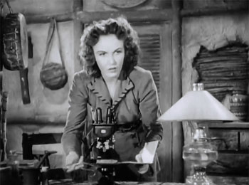 Unlike many Republic serials, Jungle Girl features a flawless cast; its major and minor players are all either first-class feature-film actors or experienced serial veterans. Graceful and gorgeous leading lady Frances Gifford, who was loaned from Paramount to Republic, falls into the former category. One of the best and most charming actresses ever to appear in a Republic chapterplay, she adopts an assured and matter-of-fact attitude towards animal and native dangers that makes her character’s supposed jungle upbringing seem credible, but varies this assurance with convincing displays of alarm, urgent concern, or sorrow when appropriate (her reaction to her discovery of her father’s death is outstanding). She’s also delightfully cheerful and good-natured in lighter moments (like her amusedly patient interchanges with native boy Kimbu), and is so appealing overall that the viewer finds it very easy to get involved in her character’s dangerous adventures.