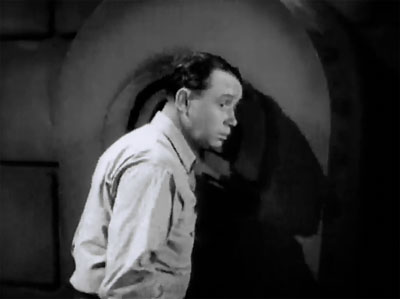 Above: Gerald Mohr as Latimer prepares to destroy the disguised blow-gun he’s just used as a murder weapon, hoping to cover his tracks.