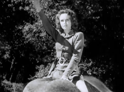Above: Frances Gifford as Nyoka orders a halt to a native attack, from atop her pet elephant.