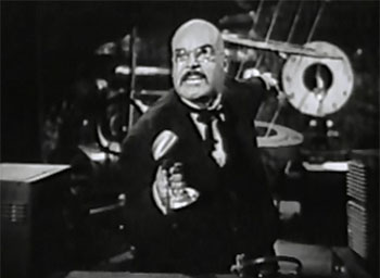 The Chief Pilot is even more passive than Hop, and ranks as perhaps the most forgettable mystery villain in serial history. A shadow on the wall who occasionally appears to issue brief orders via radio, the Pilot never directly interacts with any of the other characters, disappears for chapters at a time, and is unmasked in a pair of scenes that feel like afterthoughts. The villain’s true identity is actually something of a surprise, but since the Pilot is so nebulous a presence, the revelation has very little impact; the principal Pilot “suspects” (Arnold’s board of directors) are also so ephemeral that it takes the viewer a while to even realize that they are suspects. Another potentially interesting plot thread, the rapport that starts to develop between Jackie (who’s fascinated by the science of aeronautics) and Dr. Tobor (who treats the boy as a kindred spirit and shows him a respect he denies everyone else), is also left dangling by the writers; after taking some pains to establish the characters’ budding friendship, they fail to have it play any significant part in the plot, and eventually forget all about it.