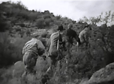 Most of the alleged action in Harrigan takes place along stretches of desert road, at Hop’s small airport headquarters, within Tobor’s cave laboratory, and inside various offices; it’s the desert locations (many of them Arizonan) that dominate the serial, which at least makes Harrigan‘s scenery a little more interesting than the backlot city streets that provided the main setting for contemporary Columbia chapterplays like Chick Carter or Brenda Starr.