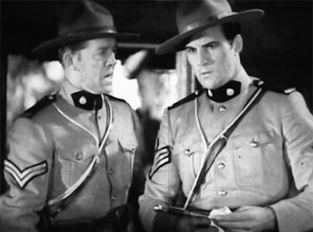 William Desmond has a meaty character role as the well-meaning but troublemaking lumberjack Dave Moran, who initially urges Steve to flee, later whips up a mob to spring him from jail, and loudly berates Tom for his “inhumanity” in arresting his brother. Desmond, who gives much freer range than usual to his natural Irish accent, delivers an entertainingly boisterous performance in this somewhat atypical part. Francis Ford is also good as Sergeant Clancy’s gravely authoritative but fair-minded commanding officer; old friends Edmund Cobb and Tom London make multiple appearances as two of Clancy’s fellow-Mounties–the former stalwart and serious, the latter stalwart and genial.