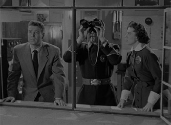 Craig Kelly portrays Cody’s governmental superior Henderson throughout the series, and perceptibly shifts from playing the character as a coolly dignified type to playing him as a snappish, fretful, and even somewhat self-important figure, more in line with the “pompous space bureaucrats” of the later Star Trek than the unflappable officials of Republic’s serials. Kenneth MacDonald appears in several episodes as the superintendent of the plant that powers Cody’s “cosmic dust blanket,” and stuntman Dale Van Sickel pops up in almost every episode as the security guard who keeps watch on Cody’s rocketship. Van Sickel, of course, also provides the stuntwork in the series, along with Tom Steele, John Daheim, Fred Graham, and other familiar stuntmen. Roy Barcroft’s voice is heard frequently throughout the series–as both villainous and non-villainous broadcasters, guards, etc.