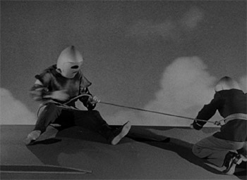 The Ruler develops a raygun that allows him to beam toxins through the dust blanket, and prepares to ravage the Earth with germ warfare. Cody must cut off the source of the element that powers the raygun, in order to save his planet. Although its title is misleading and meaningless, Giants is the series’ best episode thus far; by this point, Ronald Davidson appears to have adjusted to the unique episode runtimes, and he spaces out the action scenes well. Franklin Adreon also directs these scenes handily; they include another spaceship duel, the capture of a Ruler spaceship by means of an early version of the Star Trek “tractor beam,” a running raygun fight, a raygun shootout in a mine, and a nice hairbreadth-escape finale. The episode also continues the commendable practice of allowing the Ruler to menace the very survival of the Earth, instead of merely having him send his minions to steal or sabotage in the fashion of most of Republic’s other extraterrestrial heavies. Rick Vallin and Keith Richards both appear as soldiers of the Ruler.