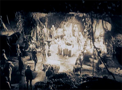 Above: The worshippers of Zar cluster around their idol in their cavern headquarters.