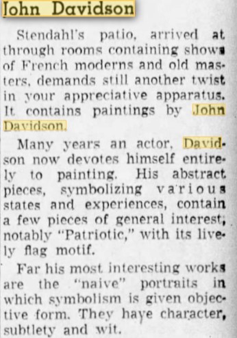 Next, two Los Angeles Times articles, one from 1934 and one from 1938, referring to Davidson’s second career as a painter: