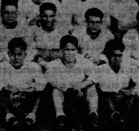 Next, a crop from a 1930 Honolulu Star-Bulletin photo of the University of Hawaii football team, with Wescoatt in the center-foreground: