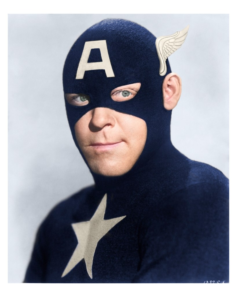 This scrapbook entry is something new, being kindly supplied by one of the site’s readers and not by myself (what can I say, things have been crazily busy at my law firm lately). The abovementioned reader, Mr. James Braddock, has very generously shared some striking professionally-colorized serial stills from his collection, which are reproduced below. I find it particularly interesting to see Spy Smasher in his original comic-book colors. The Captain Marvel and Captain America images have been retouched, as well as colorized; Mr. Braddock was experimenting with the idea of giving both characters a slightly closer resemblance to their comic-book counterparts.