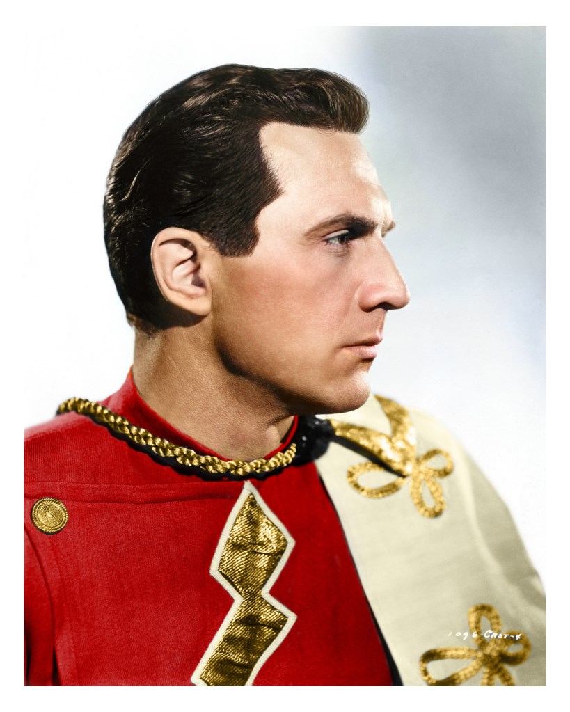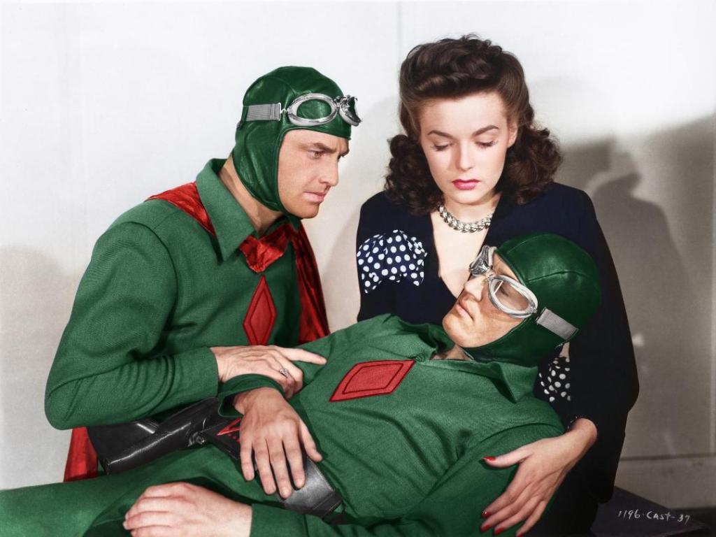 Spy Smasher and his twin brother look great in the colorized image, and it’s even more impressive in color that you can see his hand resting on his late brother’s arm. They appeared quite often together in the serial. I’d love to see an explanation of how they did that back in the day.