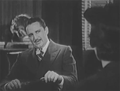 Washburn broke his string of Universal serial appearances with turns in a pair of 1936 serials for Stage and Screen Productions, a shoestring outfit run by father-and-son producers Adrian and Louis Weiss–who made a habit of signing innumerable former silent-era stars and of renting impressive sets constructed for bigger films, using them to lend prestige to their uneven and over-complicated serials. The Clutching Hand, Washburn’s first Weiss outing, featured Jack Mulhall as super-detective Craig Kennedy, who was investigating the disappearance of the scientist Dr. Gironda (Robert Frazer). Before vanishing, Gironda had perfected a formula for making artificial gold–which disappeared along with him, and sent the directors of the research corporation for which Gironda had worked scrambling in search of the missing man. Washburn was Denton, the most ruthless and unscrupulous of the corporation’s directors, and vied with many other good guys and bad guys–including Kennedy and the mysterious villain the Clutching Hand–in his pursuit of the lost formula. Though Washburn’s screen time was limited in Hand due to the serial’s overcrowded cast, he played the unmitigated scoundrel Denton with entertaining flair whenever he appeared–drawing coolly at a cigar while laying schemes, smugly and suavely parrying words with the serial’s innumerable other suspicious characters, and snapping brusquely at antagonists when things didn’t go his way.