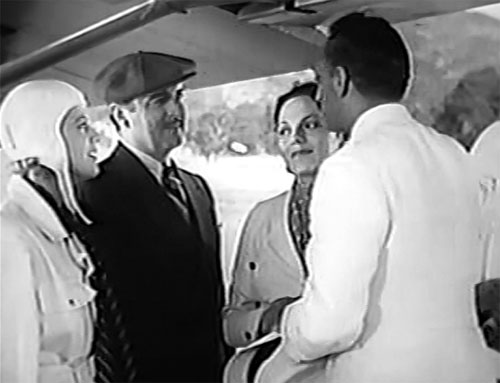 Above: Jean Rogers (far left), Bryant Washburn, and Delphine Drew are congratulated on a safe arrival in Nazil by Harry Worth in Tailspin Tommy in the Great Air Mystery (Universal, 1935).