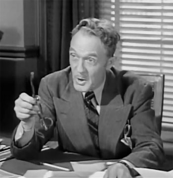 Above: Forrest Taylor attempts to deceive Ralph Byrd in Dick Tracy vs. Crime Inc. (Republic, 1941).