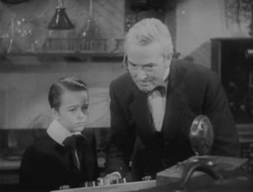 Above: An imprisoned Tommy Bond (as Jimmy Olsen) watches as fellow-captive Herbert Rawlinson sends a radio signal that will give Superman (Columbia, 1948) an idea of their location.