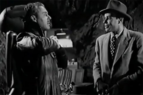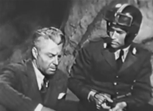 Above: House Peters Jr. is surprised to find that Tristram Coffin is actually Rocket Man in King of the Rocket Men (Republic, 1949).