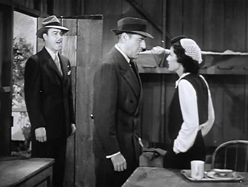 Above: Tristram Coffin vainly yells at Jack Holt and Evelyn Brent, who are pretending to be engaged in a marital spat in Holt of the Secret Service (Columbia, 1941).