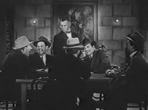 Above: Jack Mower (far left), Al Ferguson as henchman Dick, and a third henchman have their card game interrupted by a fourth heavy with important news in Sign of the Wolf.