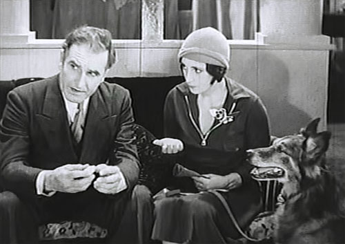 Above: Al Ferguson as Winslow in The Sign of Wolf (Principal, 1931) examines the synthetic jewels shown him by heroine Virginia Brown Faire; King the dog watches their conference.