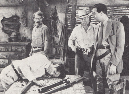Above: Al Taylor (far left) and Bud Geary seem to approve of Gerald Mohr’s extermination of the double-crossing Trevor Bardette in Jungle Girl (Republic, 1941).