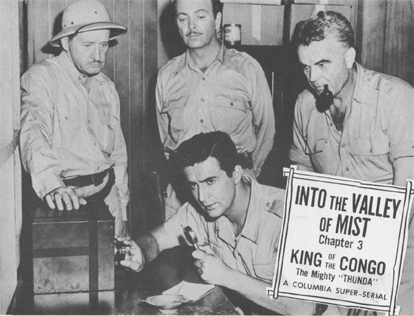 Above, from left to right: Jack Ingram, Nelson Leigh, Don McGuire, and Neyle Morrow in Congo Bill (Columbia, 1948).