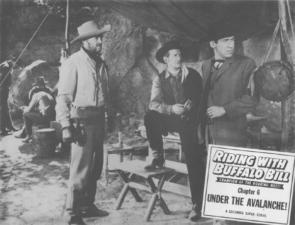 Above, from left to right: Gregg Barton, Jack Ingram, and Michael Fox in Riding With Buffalo Bill (Columbia, 1954).