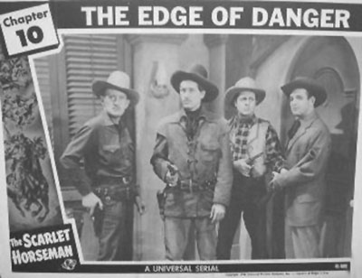 Above, from left to right: Jack Ingram, Edward Howard, Edmund Cobb, and Guy Teague in The Scarlet Horseman (Universal, 1946).