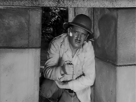 Above: “OK, wise guy, I’ll know you the next time I see ya.” Jack Ingram vows vengeance on an off-camera Leonard Penn in Chick Carter Detective (Columbia, 1946), after narrowly escaping Penn’s gunfire.