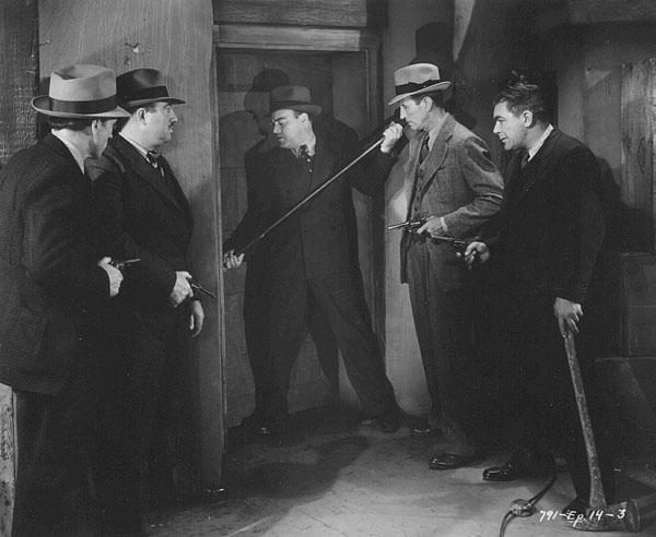 Above: John Merton forces a door in Dick Tracy Returns as Charles Middleton stands behind him.