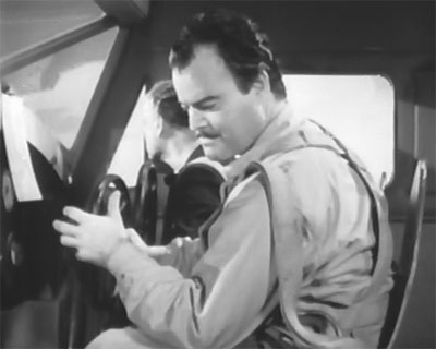Merton made his last serial for Republic in 1949, playing a full-fledged brains heavy for the first and final time in his chapterplay career. The well-made but pedestrian Cold War thriller Radar Patrol vs. Spy King featured him as the Spy King of the title, a master of espionage named John Baroda who was trying to disrupt the construction of a chain of radar stations on the US border. Although the character never left his hideout (which was located inside a stationary bomber plane), Merton made Baroda one of the more interesting villains in Republic’s later serials, lowering his usually robust voice to a sharp hiss as he outlined his schemes or dropped sarcastic remarks, and remaining smugly confident no matter how many setbacks he was handed by hero Kirk Alyn.