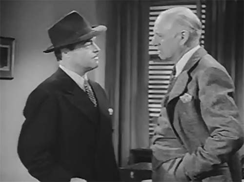 The Fighting Devil Dogs, Merton’s second 1938 serial, featured him in a one-chapter bit as a thug called Thompson, who engaged heroes Lee Powell and Herman Brix in a fistfight and got the worst of it. Dick Tracy Returns, however, gave him a major role as ex-prizefighter Champ Stark, the oldest son of gangster Pa Stark (Charles Middleton) and his father’s chief muscle in his war against Dick Tracy (Ralph Byrd). Merton played Champ as dim-witted but tough, an intimidating figure with a pugilistic swagger and a brutishly self-confident smirk.