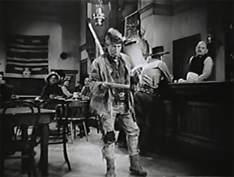 Above: Richard Cramer (minus his usual hat or toupee) watches Raymond Hatton’s furtive behavior from behind the bar in White Eagle (Columbia, 1941).
