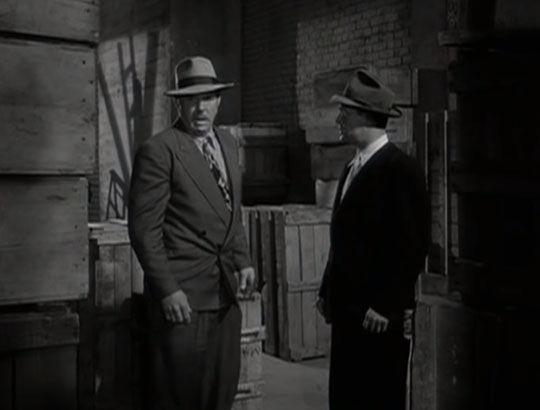 Wescoatt was a more prominent member of the henchman pack in Superman (Columbia, 1948), one of Katzman’s better chapterplays.  As a thug named Elton, he appeared throughout the serial’s second half, usually working in tandem with veteran henchman Charles King, and receiving several opportunities to menace Lois Lane (Noel Neill), pummel Jimmy Olsen (Tommy Bond), and (seemingly) punch out Clark Kent (Kirk Alyn).  His size also allowed for some good visual demonstrations of the prowess of Alyn’s Superman; the hero’s effortless subdual of the hulking Wescoatt was almost as effective a display of super-powers as was Superman’s habit of smashing through walls or lifting heavy objects.