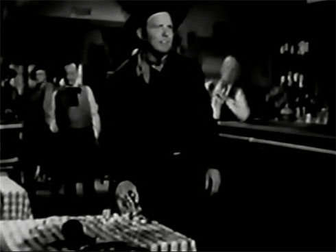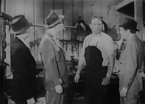 Above: Blacksmith Rusty Wescoatt is confronted by Terry Frost (far left), George Chesebro (far right), and Eddie Parker (with cigarette, facing Wescoatt) in The Vigilante (Columbia, 1947).