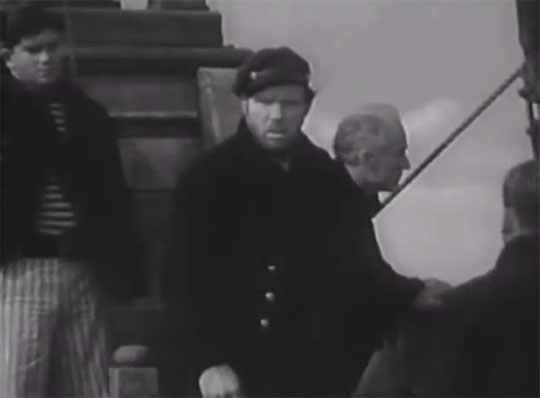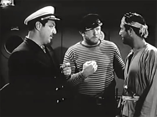 Pirates of the High Seas (Columbia, 1950), like Wescoatt’s second serial The Sea Hound, was a South Seas treasure hunt filmed on Catalina Island and starring Buster Crabbe, but was much better-plotted than Sea Hound, and was in fact one of Katzman’s best serials.  Wescoatt played Adams, one of the crewmen on a modern pirate craft captained by chief action heavy Marshall Reed; this character was somewhat less individualized than Wescoatt’s Singapore in Sea Hound, although he still got to growl and grumble to good effect, and also took part in many more fights with Crabbe than he had in the earlier outing.