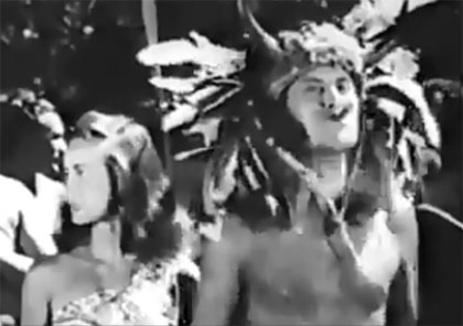 Above: Native girl Noel Neill spots an off-camera Kane Richmond rescuing some tribal prisoners, while oblivious chief Stanley Price puffs happily on a cigar in Brick Bradford (Columbia, 1947).