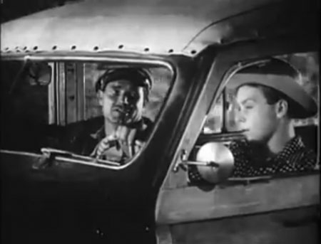 Like many a former child actor, Hodges had a good memory for dialogue and could get his lines right on the first take, a talent that recommended him to Sea Hound’s budget-conscious producer Sam Katzman; during the remaining years of the 1940s, Ralph would do most of his screen work at Katzman’s Columbia unit, playing both minor and prominent parts in B-features and serials. His next Katzman chapterplay was the engaging Superman (Columbia, 1948), in which he did a small but memorable turn as a teenaged Clark Kent during the serial’s long first-chapter origin-story sequence; within the space of his time on screen, Hodges’ Clark dramatically rescued his foster-father Eben Kent (Ed Cassidy) from a tornado and a loose high-tension wire–first seizing the live wire and tossing it away, then holding the elder Kent’s car firmly against a tree till the storm passed. Hodges’ concerned but energetically confident demeanor as he performed these feats helped to make them look believable on screen, and made his short-lived characterization mesh quite nicely with Kirk Alyn’s equally energetic performance as the adult Clark Kent in the main body of the serial.