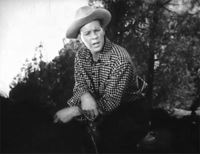 Above: Ralph Hodges asks questions from atop his horse in Bruce Gentry (Columbia, 1949).