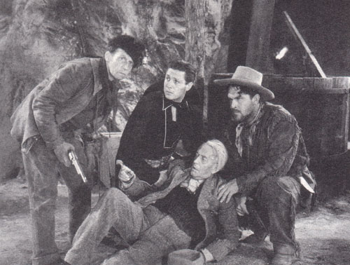 Above, from left to right: Raymond Hatton, Bob Livingston, and Guinn “Big Boy” Williams aid the injured Lloyd Ingraham in The Vigilantes Are Coming (Republic, 1936).