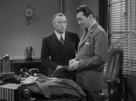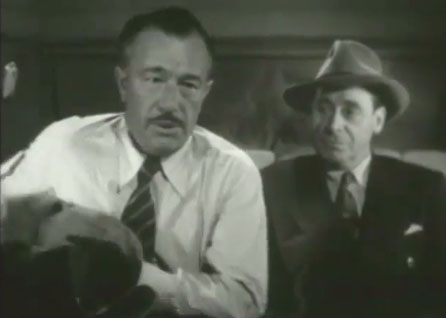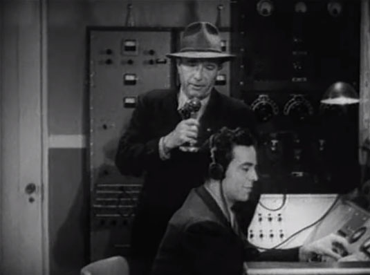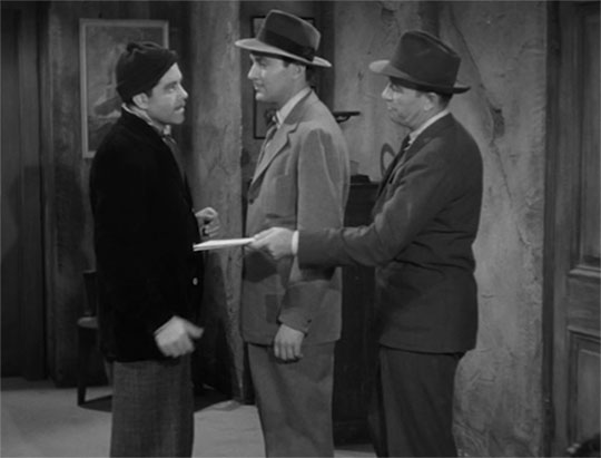 Above: A smirking Robert Armstrong serves the irritated Edward Emerson with a search warrant as Kent Taylor watches in Gang Busters (Universal, 1942).