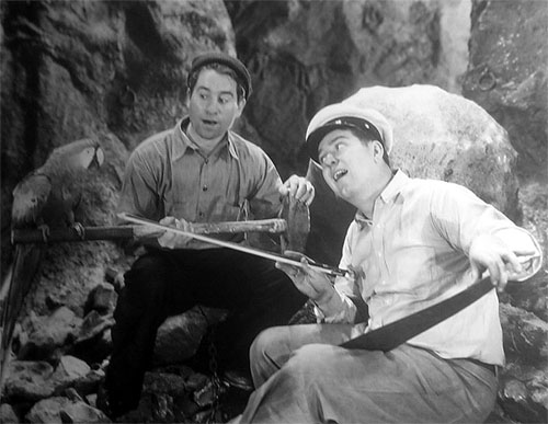 Above: Frankie Marvin and Smiley Burnette fool around with Sinbad the Parrot in a publicity still for Undersea Kingdom (Republic, 1936).