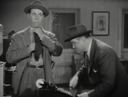 Above: Syd Saylor deadpans as Joe Devlin tries to figure out how much betting money Saylor owes him–by using an adding machine that Saylor’s surreptitiously monkeyed with in Brenda Starr, Reporter.