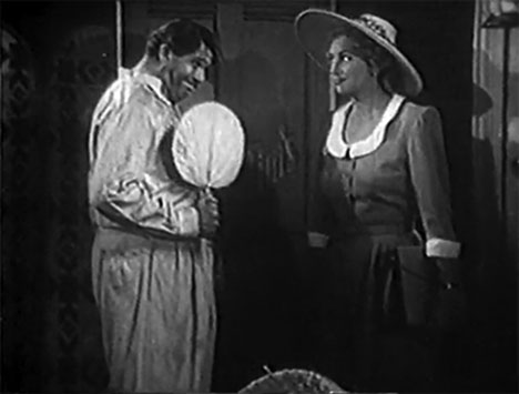 Above: “I like visitors, I do, and I always give ’em the best, the very best.” Cy Kendall assures villainess Tala Birell that he will provide an appropriate reception for a snooping hero in Jungle Queen (Universal, 1945).