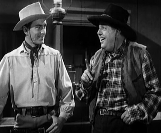 Above: Cy Kendall holds forth to an amused Peter Cookson in The Scarlet Horseman (Universal, 1946).