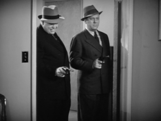 Above: Cy Kendall tries to figure out which side he’s on at the moment, as Lloyd Bridges is confronted by the off-camera Victoria Horne and her henchmen in Secret Agent X-9.