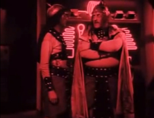 Above: Gene Roth orders a henchman to blow up an oncoming rocket in Captain Video (the red tinting was used to differentiate scenes set on Atoma in the original print of Video, and has been restored on the current DVD release).