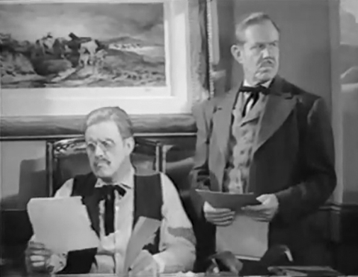 Above: Sam Flint looks worried as Gene Roth examines some dangerous documents in Adventures of Frank and Jesse James (Republic, 1948).