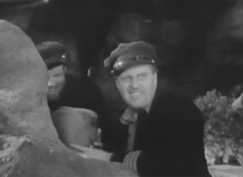 Above: “Captain Shard…don’t you know me?” “Who’d want to know you?” Gene Roth flippantly rebuffs “wild man” Ayrton (Terry Frost), a marooned former member of his crew, in Mysterious Island (Columbia, 1951).