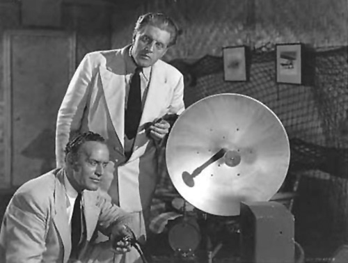 Above: Virginia Lindley, Gene Roth, and Bruce Edwards go over aerial maps in The Black Widow (Republic, 1947).